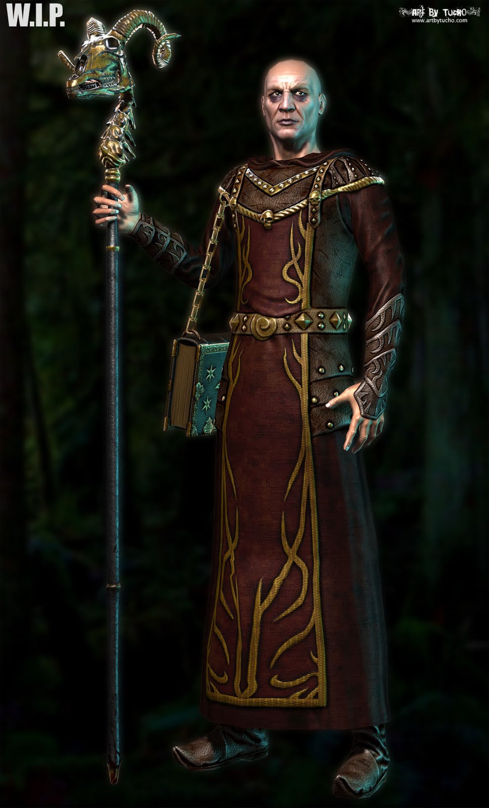 Tiven un pouco de tempo libre estes días así que estiven traballando un pouquiño no Warlock, aquí vos deixo o primeiro intento de pose, ainda me falta moito traballo de skinning para poder posalo como toca. A imaxe en realidade é un render en realtime que fixen co Xoliul Shader, despois engadínlle o fondo en photoshop, pero o resultado non me convence moito... non teño moi claro como o farei na imaxe final, seguramente empregue o Xoliul Shader para o "render" pero non sei como acabarei compoñendo a imaxe final.________________________________